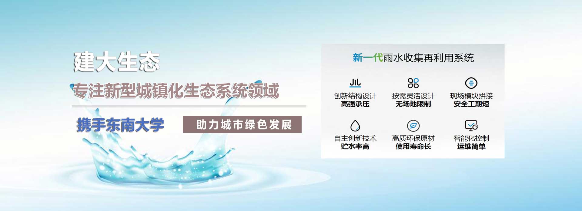 江蘇建大生態科技有限公司,是一家專注環保產業的高新科技企業,主要業務范圍包含:海綿城市、雨水收集系統、PDS防護虹吸排水系統、純水處理設備、污水處理設備、一體化預制泵站、ALC加氣板等。公司研發團隊與”東南大學”合作多年,具備前瞻性產業以及產品的設計與開發能力。我公司一直以穩定至優的產品和良好的企業信譽,取得了廣大客戶的信任。公司所有產品均通過內部質量標準,強大的生產能力和高精的檢測手段,以客戶滿意為中心,不斷追求創新!